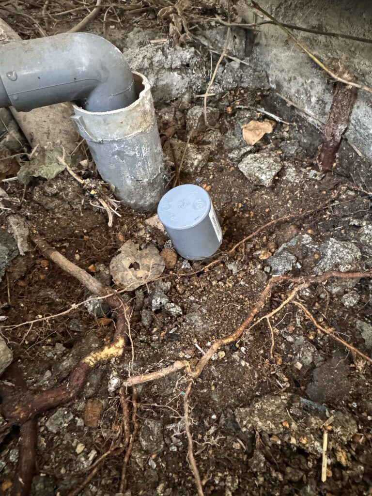 エルボーの部分しか露出していないので、そのままではキャップがつけられません。ChatGPT の指令は「コンクリートを破壊せよ!」でした。そこで、以前水晶探しに使ったロックピックハンマーとタガネが大活躍。さほど苦も無く破壊することができました。