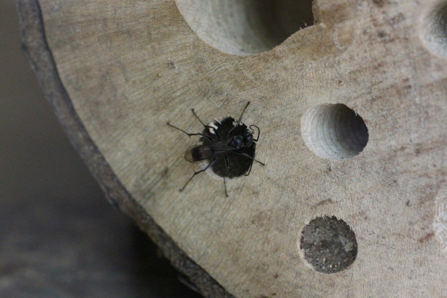 夕方で暗くなってきたので痺れを切らして観察を打ち切り、蜂を採集して帰りました。クモの方は油断していたら落ち葉に紛れてしまい、残念ながらどうしても見つけられませんでした。